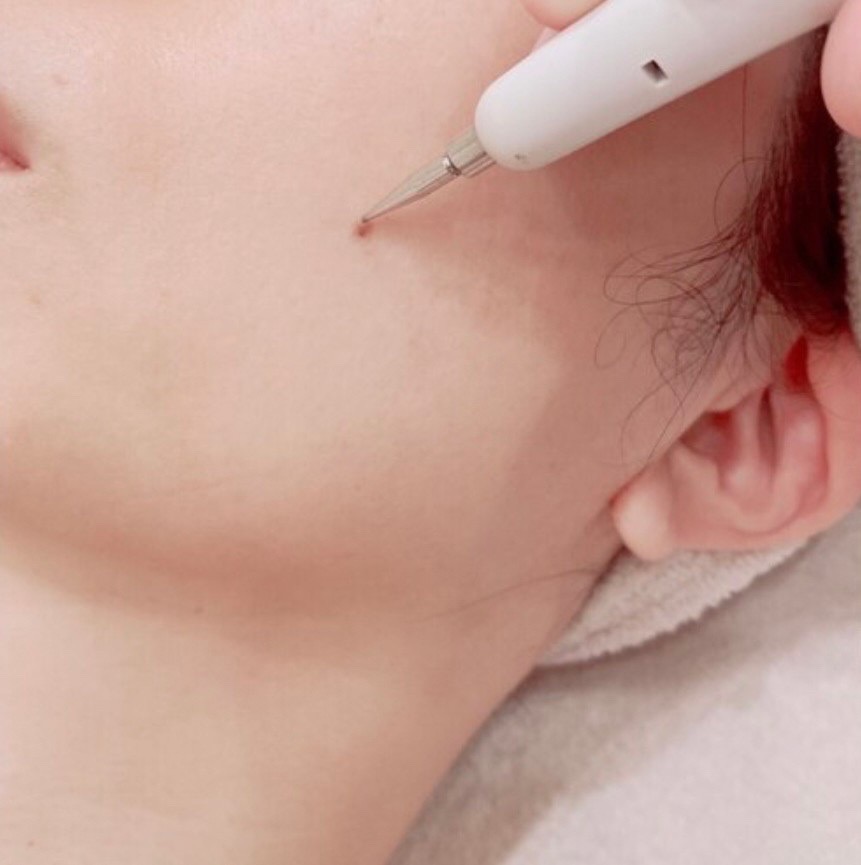 表皮に超音波低周波をシミ部位にあて、瘡蓋となって剥がれていく施術となっています。1カ月に1回を3回繰り返し3カ月の期間をいただきます。6/24より10分お好きな部位へかけ放題4,000円にてキャンペーン開始します。