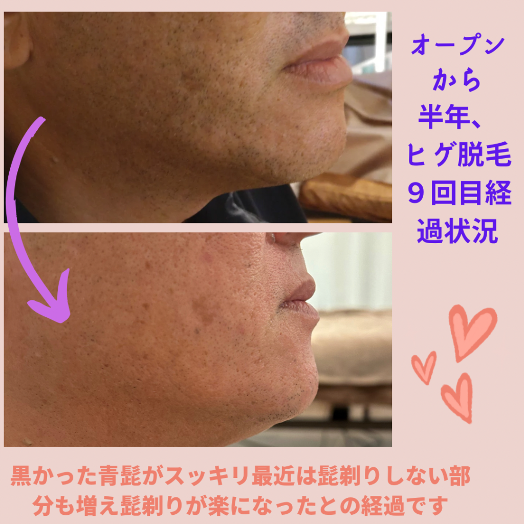 サロンドエムジョリーはようやく半年を迎えました。お客様には「以前からやっていると感じるくらいですねー」とお声をかけていただいてます。最近は脱毛回数も増え、オープンから通っているお客様が続々と「生えにくくなってきた」「剃ることがなくなってきた」と脱毛効果のお声をいただいております。特にヒゲ脱毛は時間外も受け付けており、お仕事帰りも大好評。男性スタッフ希望の方は相談受付てます。(時間限定)