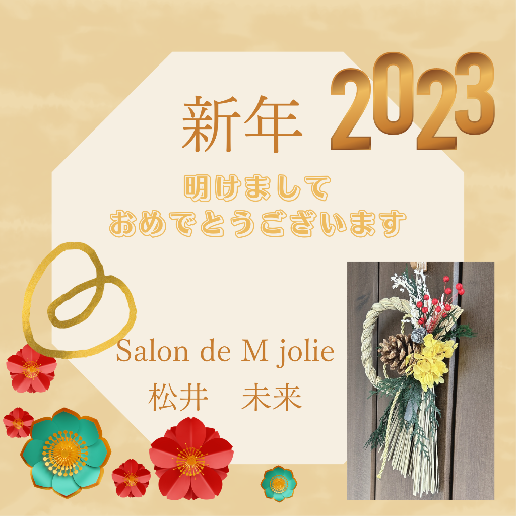 明けましておめでとうございます。サロンドエムジョリーはおかげ様で6ヶ月を無事に迎え、新たな年を迎えることができました。沢山のお客様の出会いは私の宝です。これからもよろしくお願いします。